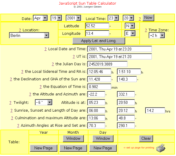 back to JavaScript Sun Table Calculator