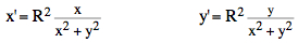 radius R. OP * OP' = R2 which follows from similar triangles: OP : R = R : OP' Using rectangular coordinates formulae of the transformation from P(x,y) to P'(x',y') are: