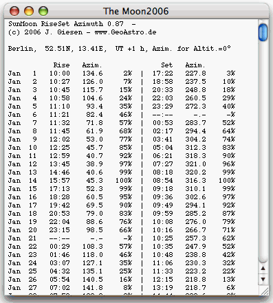 This Java applet displays the azimuth of the Sun and the Moon at rise or set