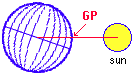 the declination and Greenwich-Hour-Angle (GHA) are the coordinates (latitude and longitude) of the sun's Geographical Position (GP), where the line from the sun to the center of the earth intersects it's surface. |